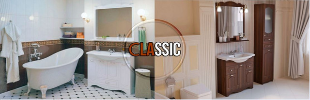 Меблі для ванних кімнат Класик від фабрики АКВА РОДОС представлена тумбами з раковинами, пеналами і дзеркалами. Колекція Класик виконана в білосніжному кольорі і чотирьох розмірах: 60, 65, 80 і 100 див.